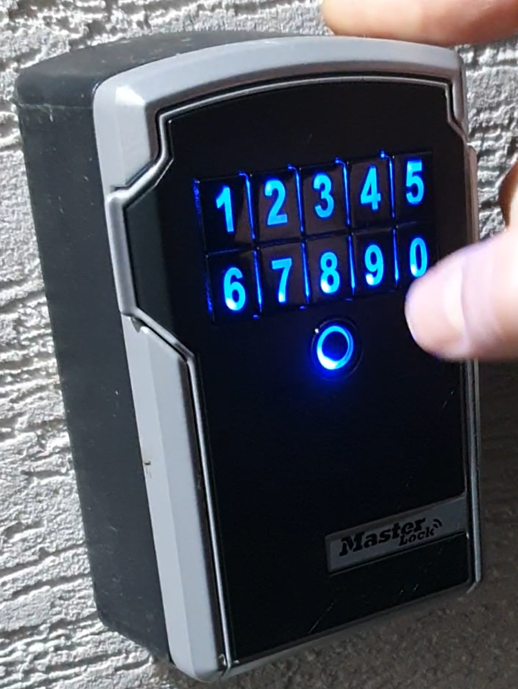 The temporary code will be sent to you 48 hours before your arrival. Press the round button to illuminate the keypad, then enter the code